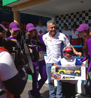 Erick mostró mucha alegría ya que el Lic. Javier Hernández le hizo entrega de un casco de carreras con su nombre, un carro de carreras de control remoto, además de prendas de vestir. Esta es otra obra más, donde el Lic. Javier Hernández demuestra la responsabilidad social empresarial que se maneja dentro de Corporación Bulock’s, mostrándose contento y satisfecho ante esta noble causa.